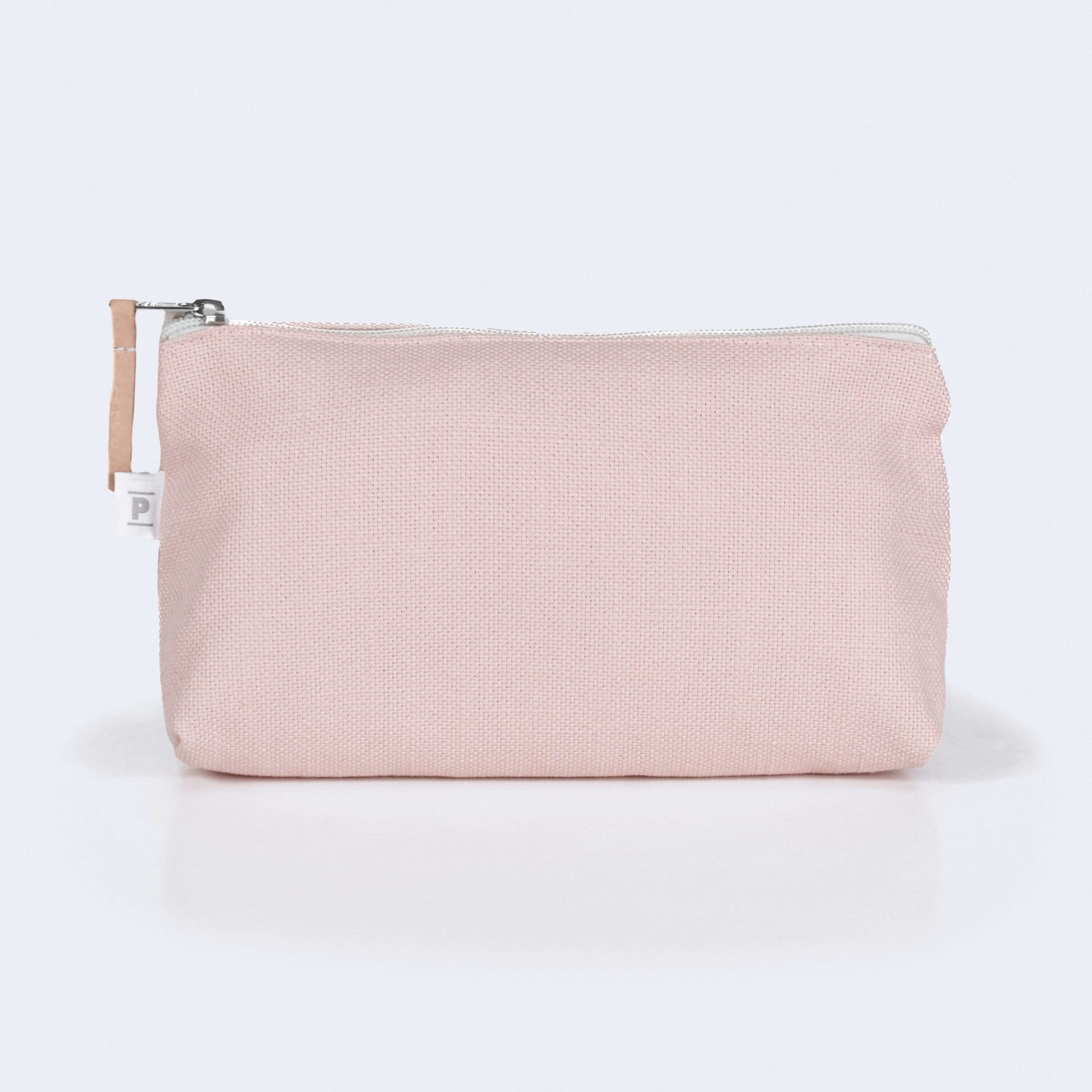 Necessaire de maquillaje con cordón y rayas rosa