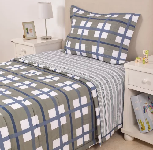 Edredón Kids Cuadros Verde Y Azul