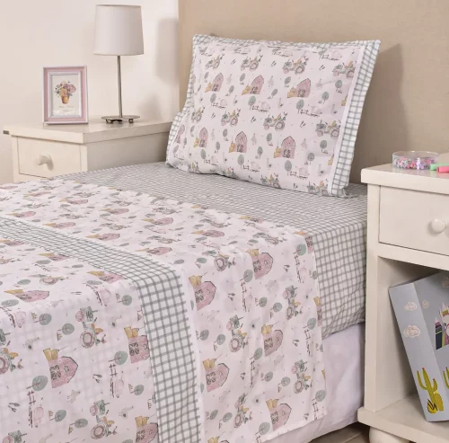 Juego de sábana Kids Granja Rosa Verde Y Beige