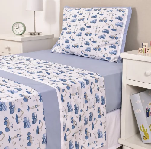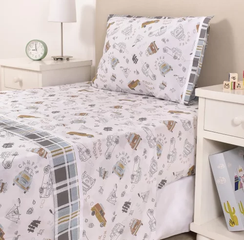 Juego de sábana Kids Autos Beach Celeste Y Mostaza