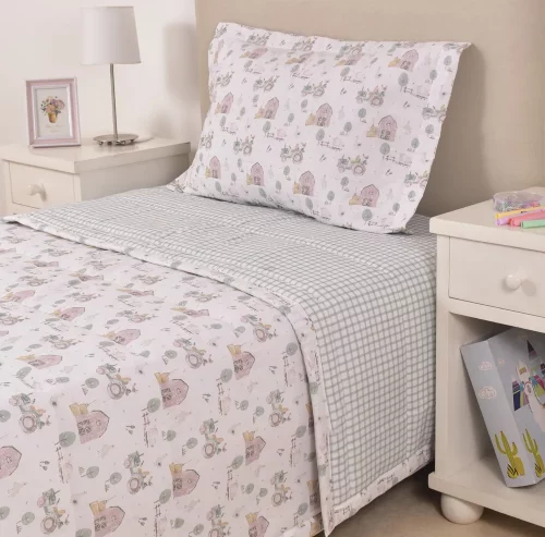 Juego de sábana Kids Granja Rosa Verde Y Beige