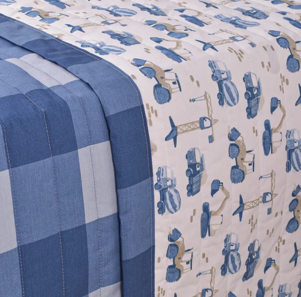 Edredón Kids Cuadros Celeste Gris Y Mostaza