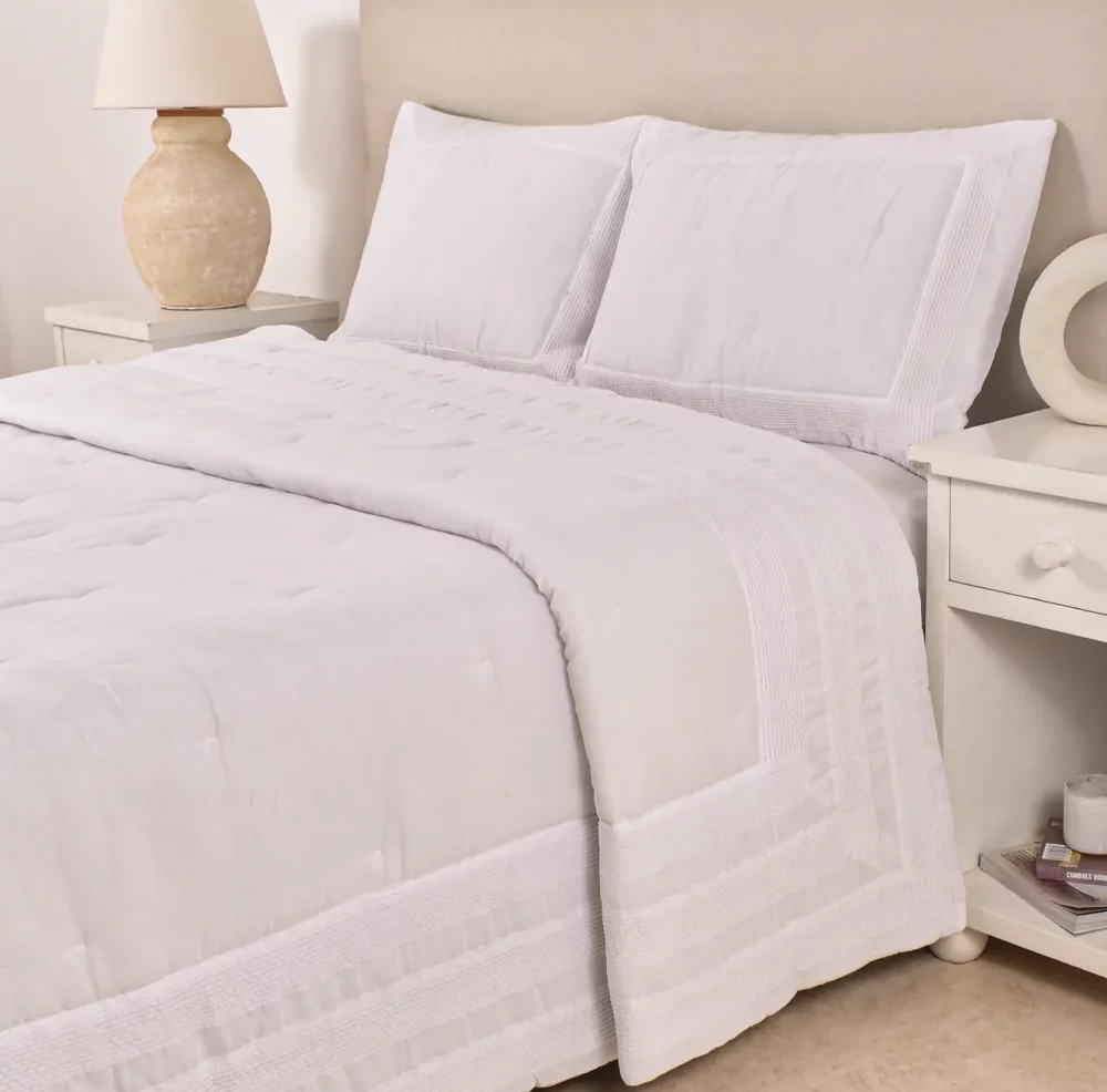 Edredon Col. Naturale Lienzo Alma con Alforzas Blanco