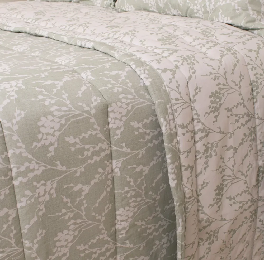 Cubrecama Nina Hojitas Blancas y Verdes – Twin