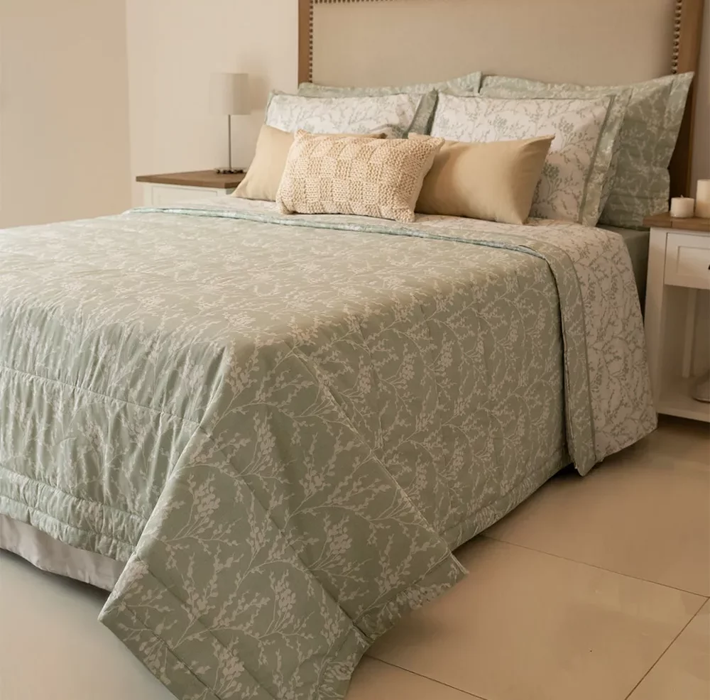 Cubrecama Nina Hojitas Blancas y Verdes – Twin
