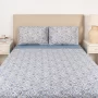 Juego de sábanas de tejido sabanero 120 hilos. Contiene una sábana ajustable de 30cm de vértice, una sábana superior y dos fundas (el tamaño Twin trae una funda). Puede complementarse con el Edredón del mismo diseño.