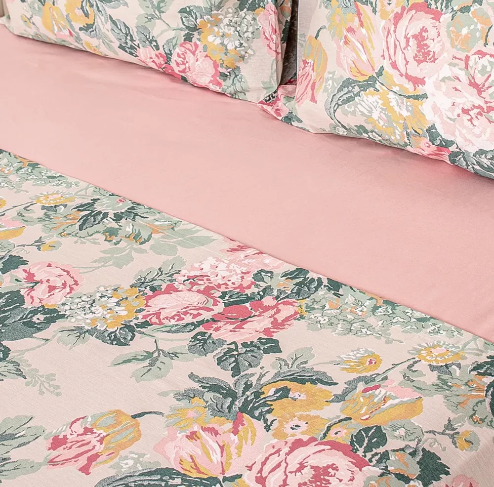 Juego de sábanas de tejido sabanero 120 hilos. Contiene una sábana ajustable de 30cm de vértice, una sábana superior y dos fundas (el tamaño Twin trae una funda). Puede complementarse con el Edredón del mismo diseño.