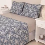 Juego de sábanas de tejido sabanero 120 hilos. Contiene una sábana ajustable de 30 cm de vértice, una sábana superior y dos fundas (el tamaño Twin trae una funda). Puede complementarse con el Edredón del mismo diseño.