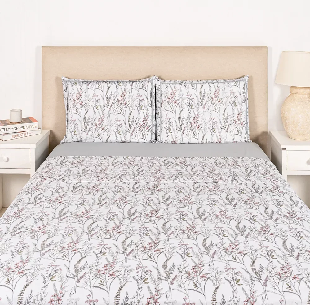 Juego de sábanas tejido sabanero 200 hilos. Contiene una sábana ajustable de 30cm de vértice, una sábana superior (el tamaño Twin lleva una funda). Puede complementarse con el Edredón y el cubrecama del mismo diseño.