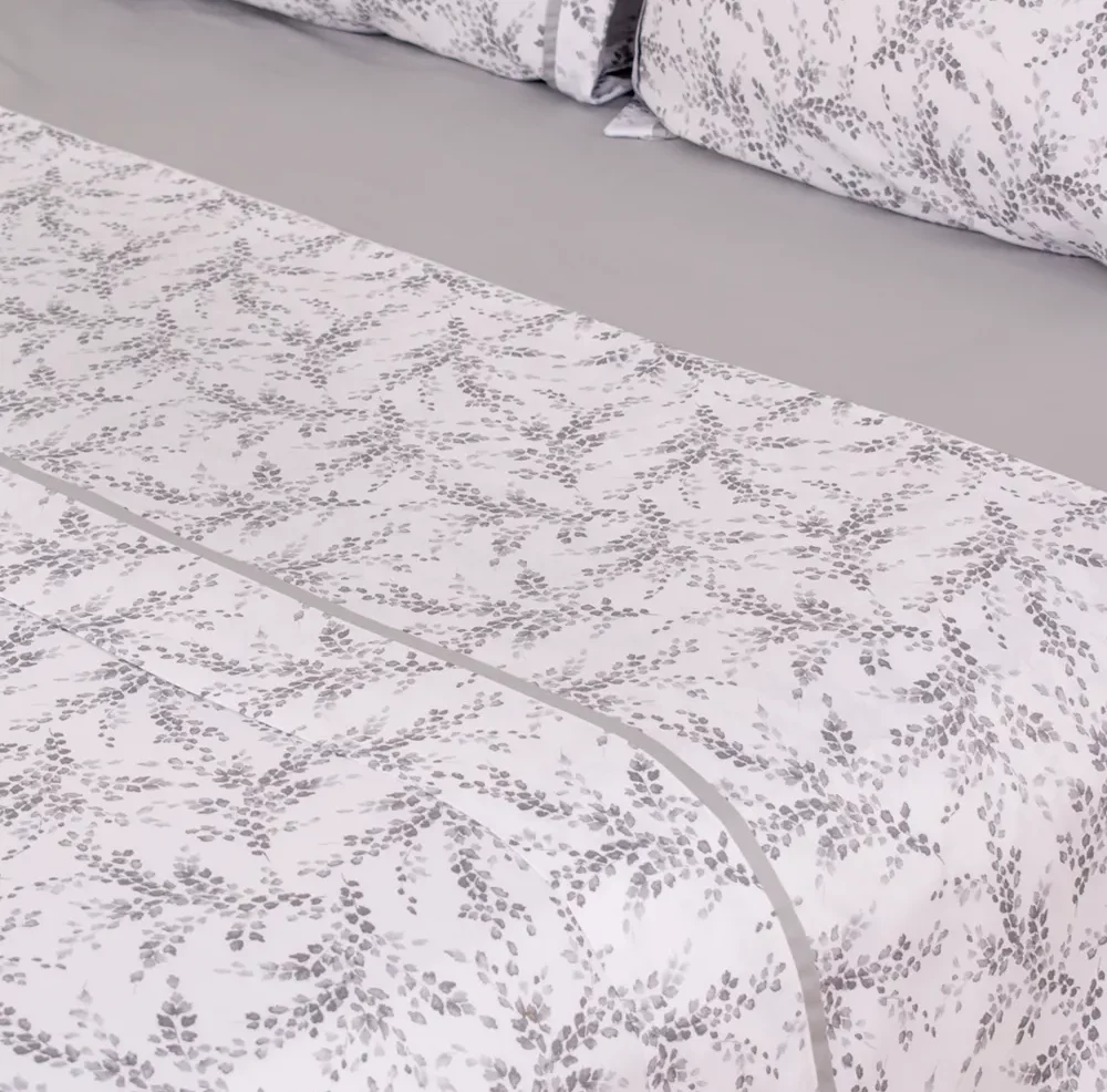 Juego de Sábana Finezza 400 Hilos, su diseño delicado y tonos sutiles proporcionan un look elegante a la habitación. Hecho 100% de algodón, otorgando una textura suave y máximo. Confort para el descanso. Contiene una sábana ajustable, una superior y su correspondiente funda.