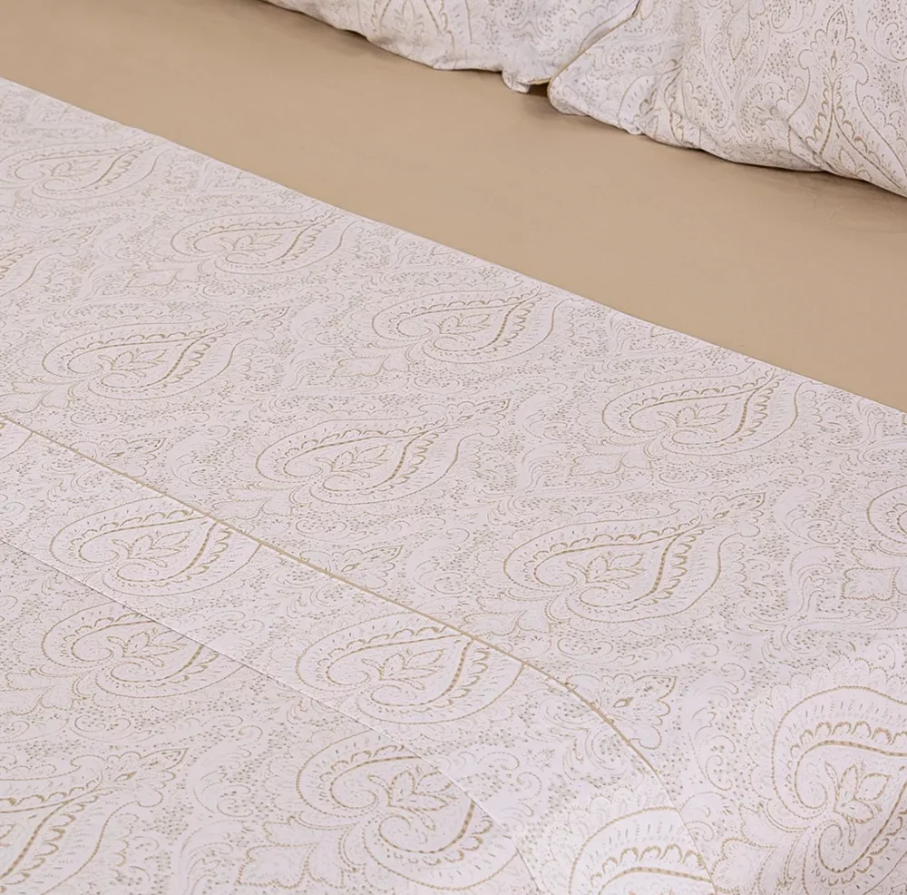 Juego de Sábana Finezza 400 Hilos Paisley Beige - PILAR