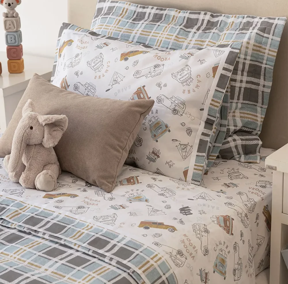Juego de sábana Kids Autos Beach Celeste Y Mostaza