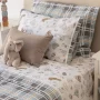 Juego de sábana juvenil cuadros y rayas azul y celeste