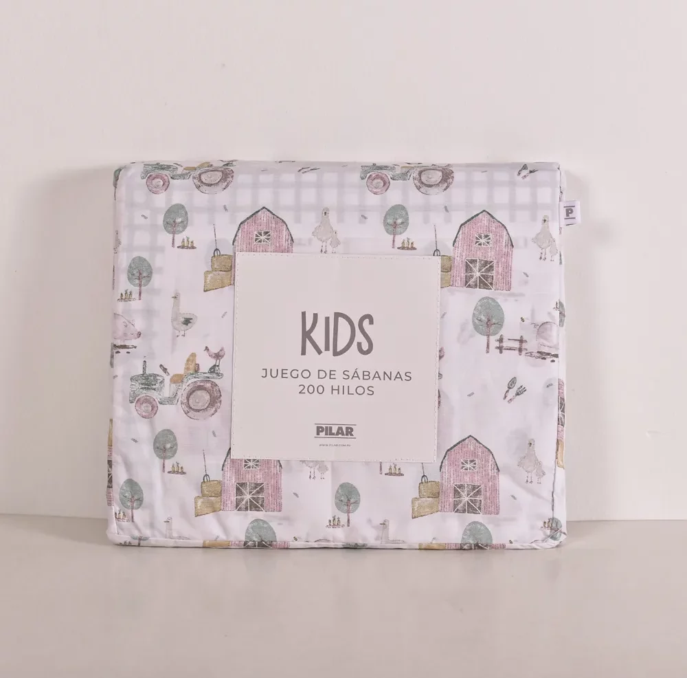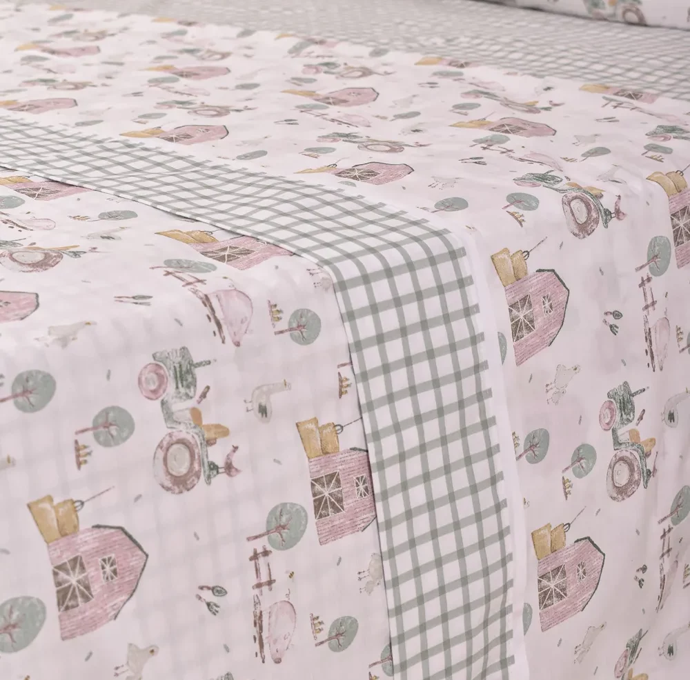 Juego de sábana Kids Granja Rosa Verde Y Beige
