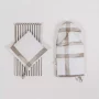 Kit Cocina con diseños estampados. El kit contiene 1 Repasador, 1 Tomaolla y 1 Guante. Antimanchas.
