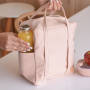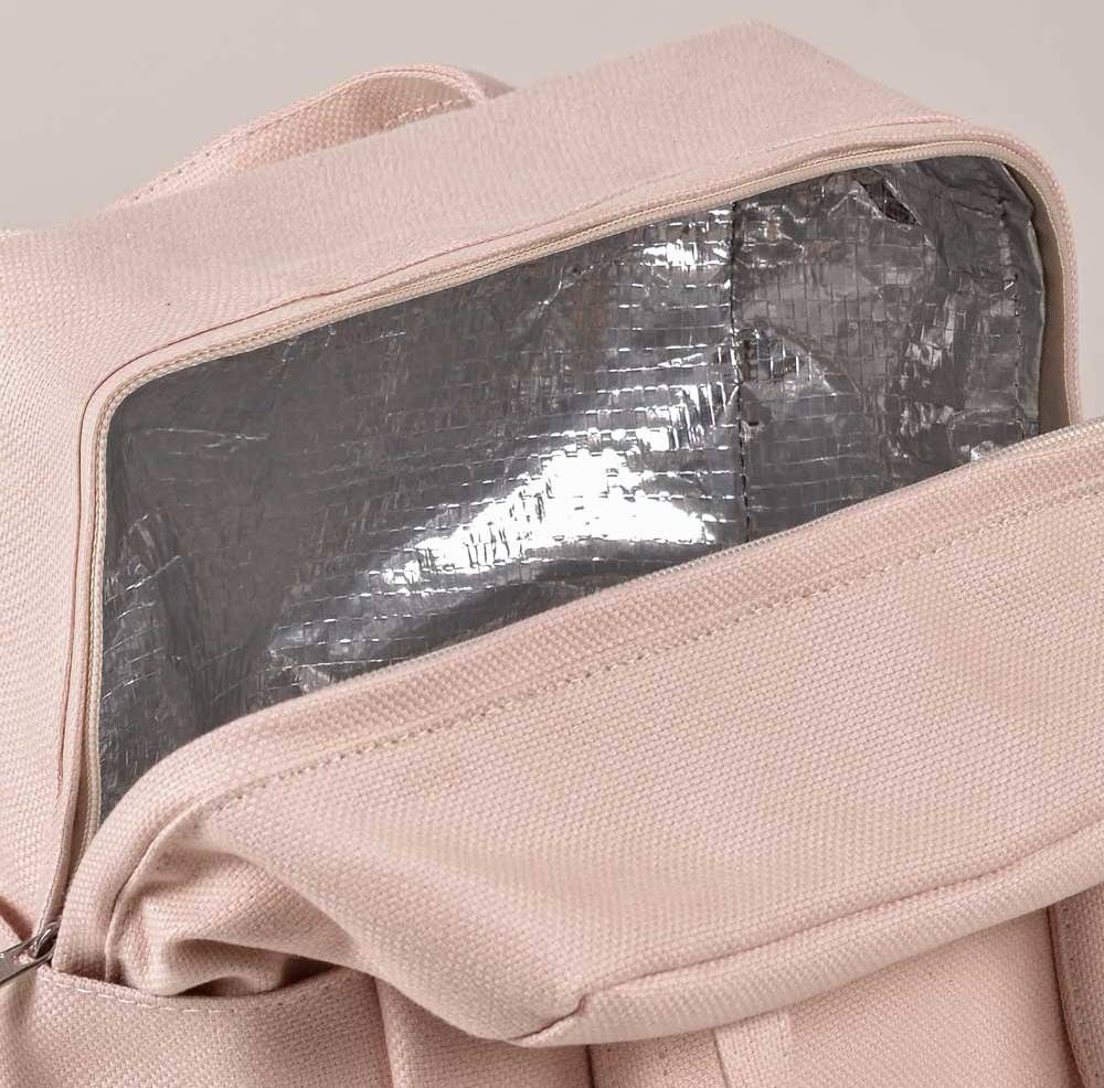 Lonchera térmica con acabado impermeable. Mantiene los alimentos fríos o calientes gracias a su interior térmico. Con manijas, cierre y bolsillos en ambos costados.