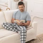 Pantalón Pijama y Remera Para Hombre Cuadros Gris