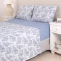 Juego de sábanas de tejido sabanero 120 hilos. Contiene una sábana ajustable de 30 cm de vértice, una sábana superior y dos fundas (el tamaño Twin trae una funda). Puede complementarse con el Edredón del mismo diseño.