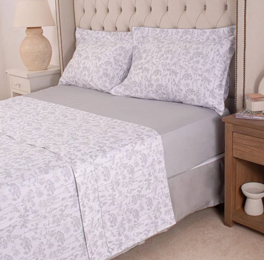 Sábana Finezza 400h 2026 Queen Floral Gris - PILAR
