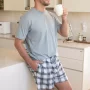 Short Pijama y Remera Para Hombre Cuadros Gris