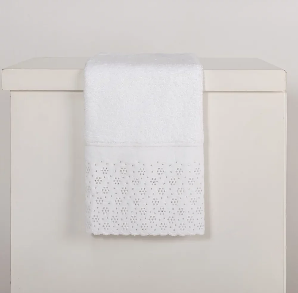 Las Toallas Lovely están fabricadas con hilo 100% algodón peinado, proporcionando alta capacidad de absorción, suavidad y tacto delicado. Presentan una guarda con un moderno bordado floral en puntos, que añade belleza y sofisticación. Cuentan con prelavado y preencogido.
