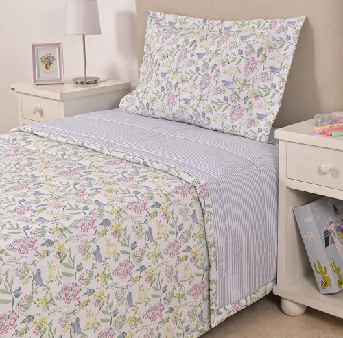 Edredón Kids Cuadros Celeste Gris Y Mostaza