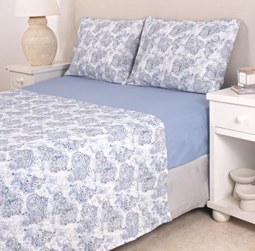 Juego de Sábana Colección Valdivia Roses Azul