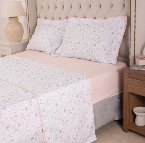 Juego de Sábana Finezza Verano 2025 Liberty Blanco y Rosa