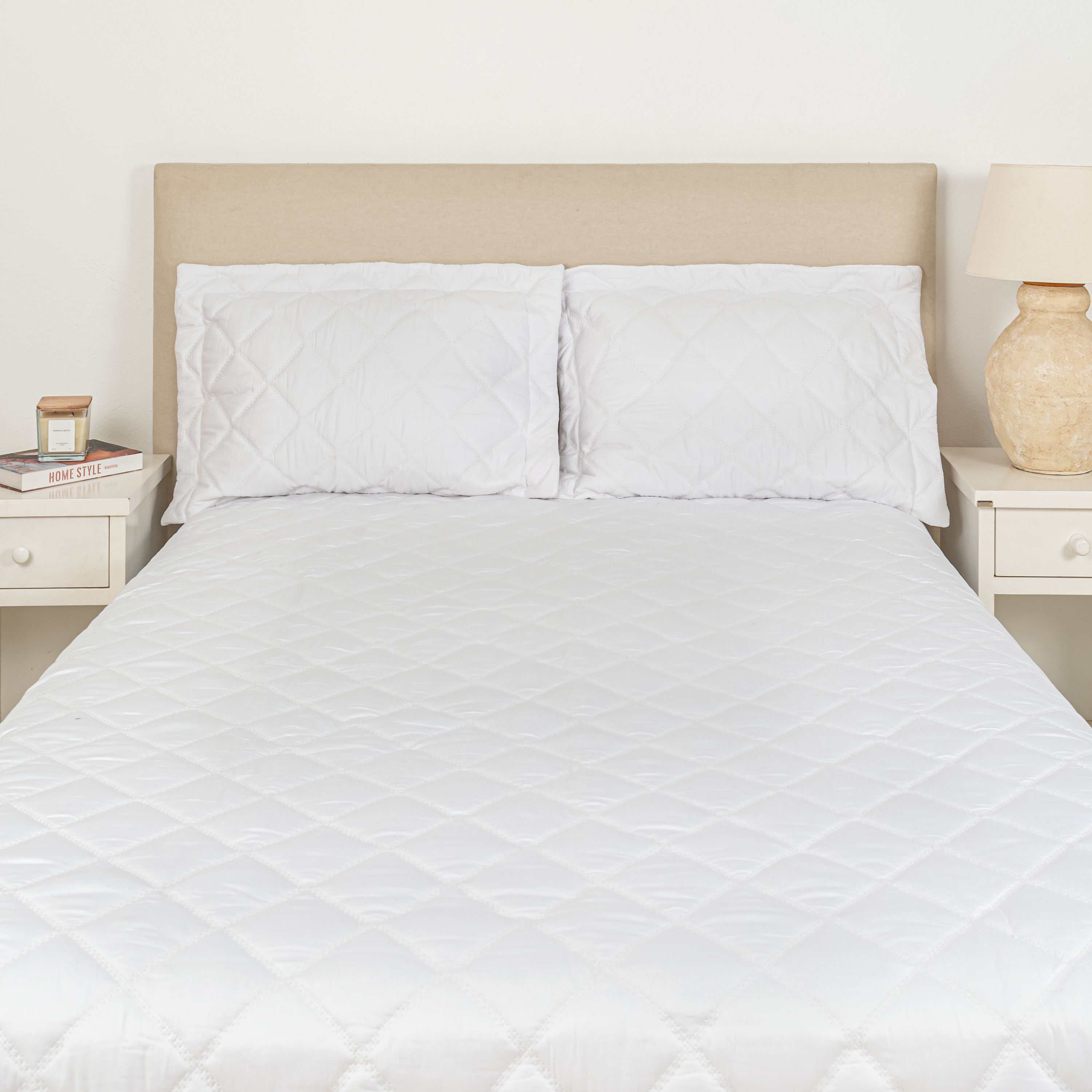 Juego de Sábana Basic 200 hilos color Block Blanco Beige